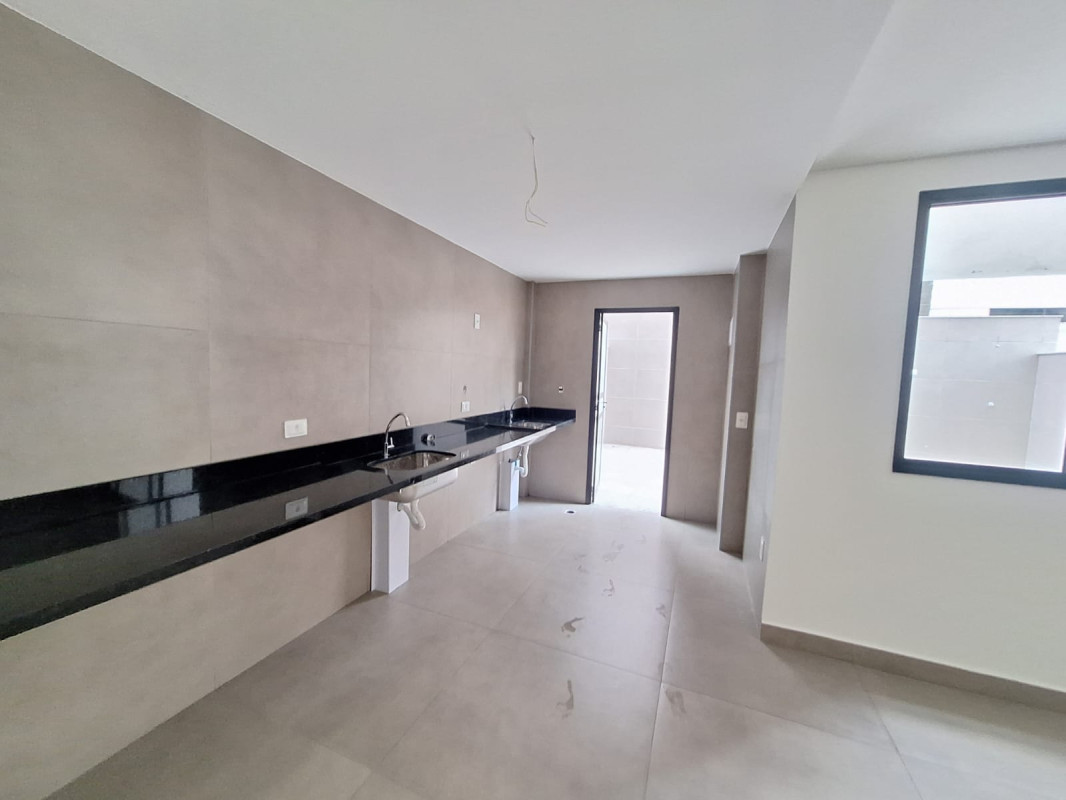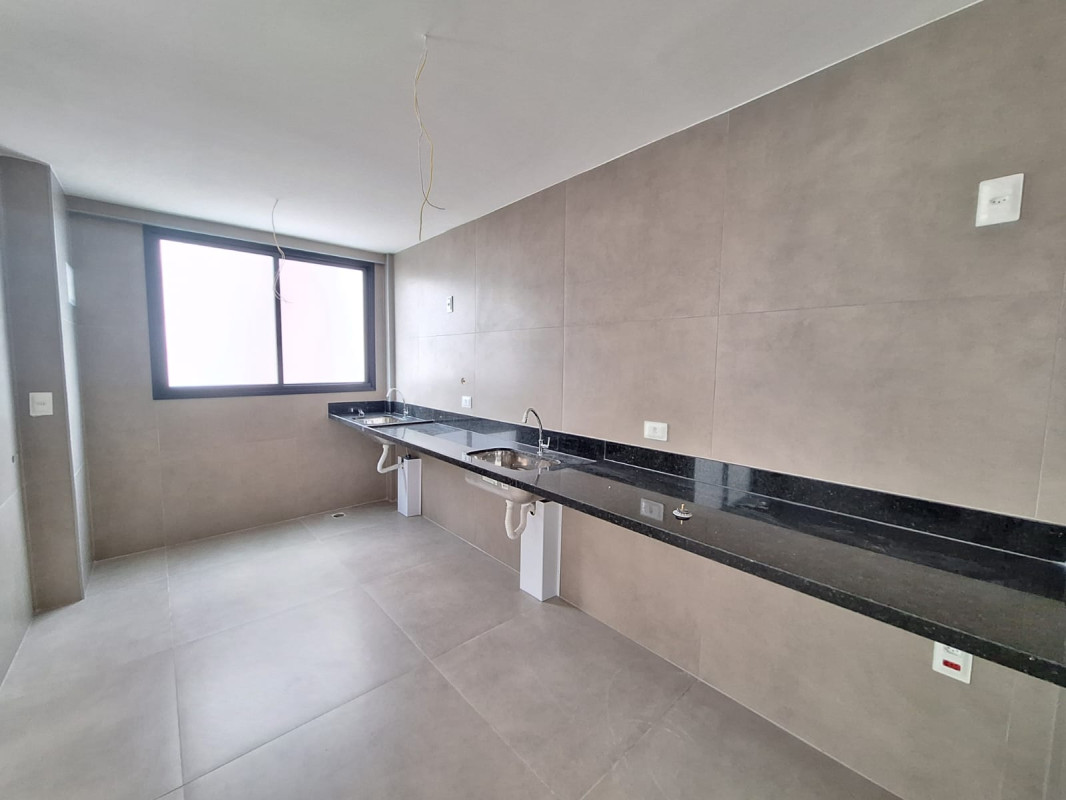 Cozinha com bancada granito e piso porcelanato,