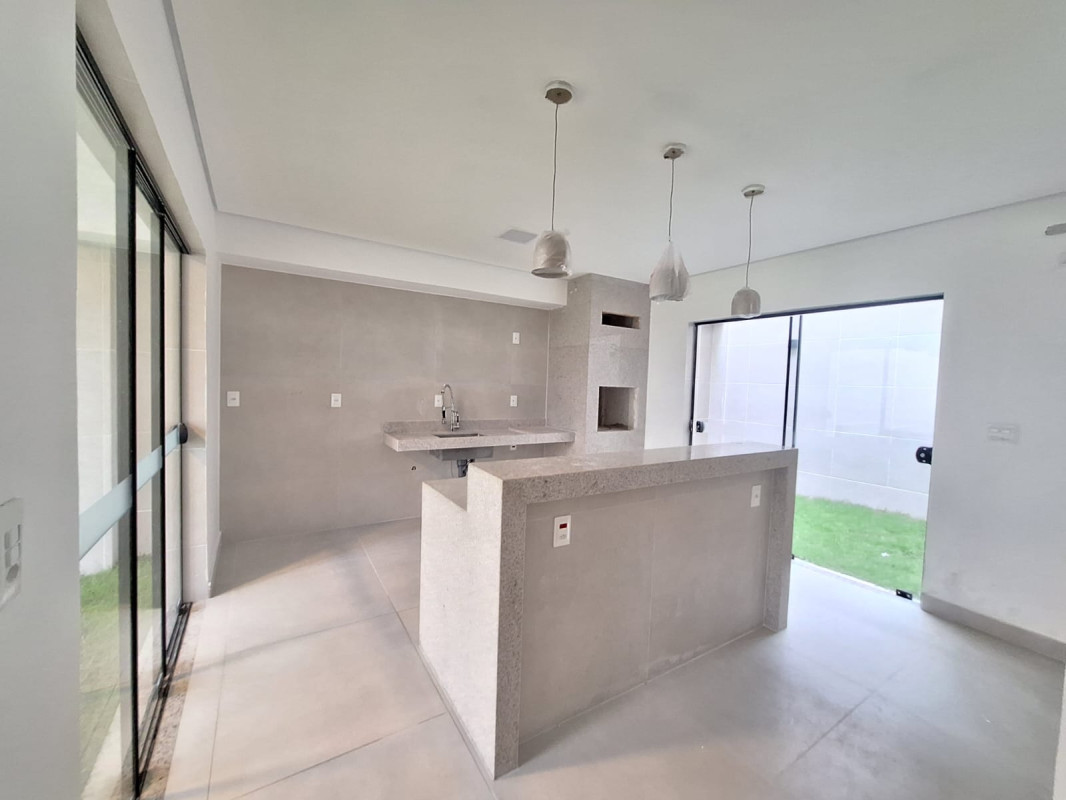03 quartos com piso laminado, sendo 01 suíte com bancada granito e piso porcelanato,